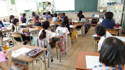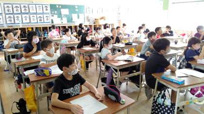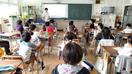 3時間目、4年生が理科の学習をしています。「月の動きかた、月の満ち欠け」について学習しています。