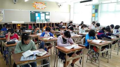 1時間目、6年生が国語の学習をしています。立松和平さんの「海のいのち」を読んでいます。