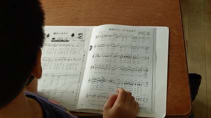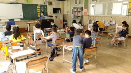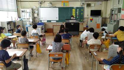 5時間目、1年生が音楽の学習をしています。「世界がひとつになるまで」をみんなで歌っています。