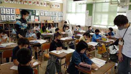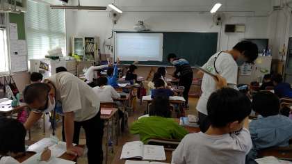 1時間目、4年生が算数の学習をしています。「二けたの数でわる筆算」を学習しています。