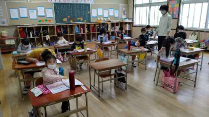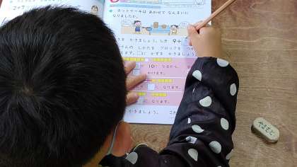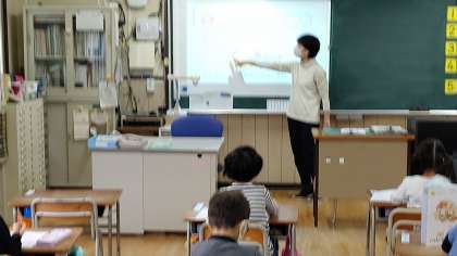 1時間目、1年生が算数の学習をしています。「たし算」を学習しています。