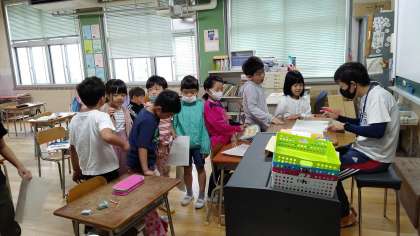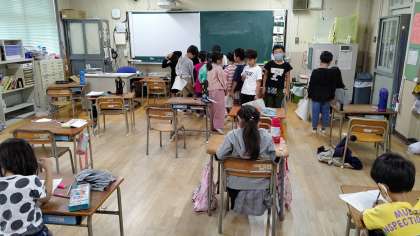 1時間目、2年生が国語の学習をしています。「テストの間違い直し」をしています。