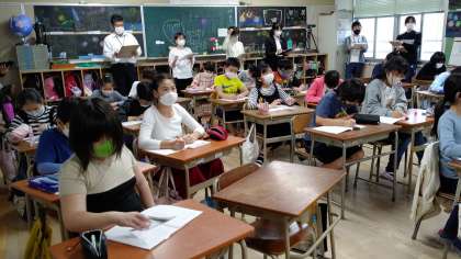 6時間目、5年生が算数の学習をしています。「単位量あたりの大きさ」について学習しています。