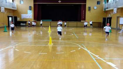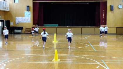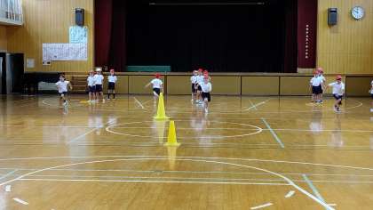 2時間目、2年生が講堂で体育の学習をしています。今日は、今までの練習の成果を、保護者の方々に観てもらうため、みんな張りきっています。