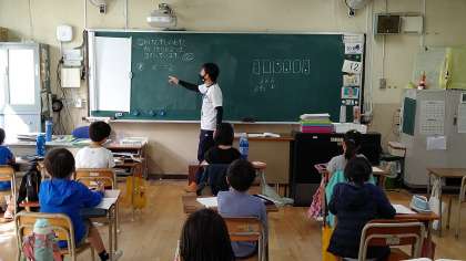 1時間目、2年生が算数の学習をしています。「かけ算」を学習しています。