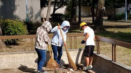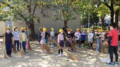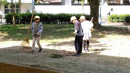 3時間目、4年生が東小橋公園の清掃活動をしています。日頃、みんなが遊んでいる公園をきれいにしています。