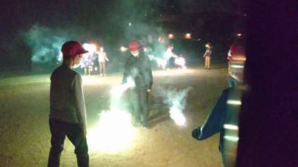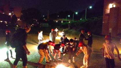 キャンプファイアのあと、みんなで花火を楽しみました。