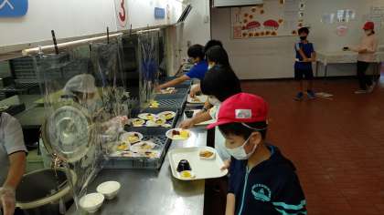 食堂で、朝食を食べています。