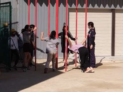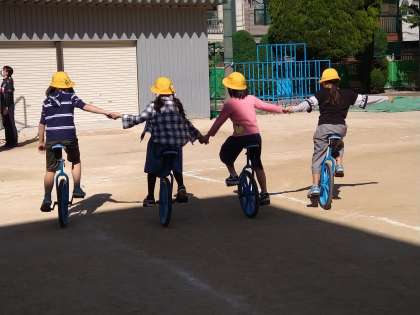 今日は、5年生が自然体験学習のため4・6年生が遊んでいました。普段より広く感じる運動場でした。のぼり棒・一輪車・ボールで遊んでいました。