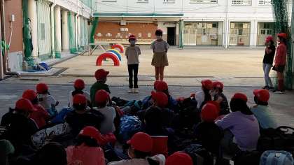 帰校式です。みんな無事に帰ってきました。自然体験活動をこれからの学校生活に活かしてください。