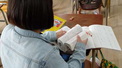 わからない言葉を、辞書で調べています。