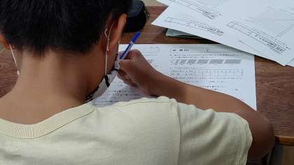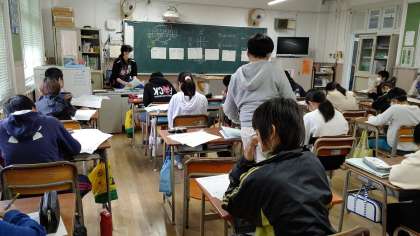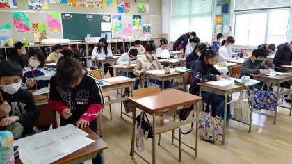 3時間目、6年生が算数を学習しています。「比例」の復習問題をしています。