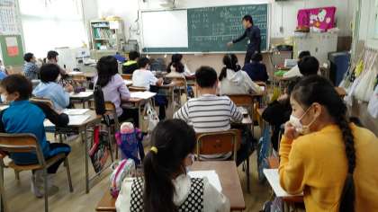 3時間目、5年生が算数を学習しています。「密度」について学習しています。人口密度について考えています。