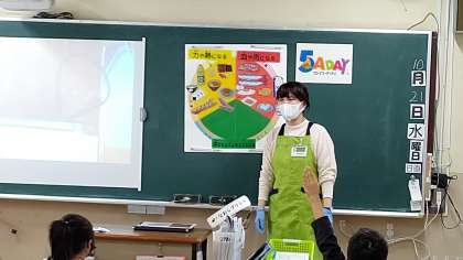 2時間目、3年生にスーパーライフから広報担当の中村さんに来ていただき、「食育やスーパーのしくみ」についてお話をしていただきました。