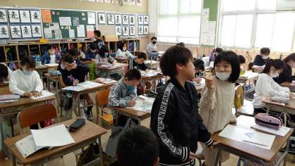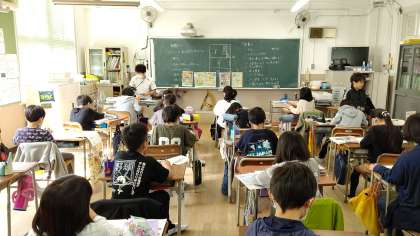 2時間目、4年生が「水の学習で学んだことをテーマに新聞づくり」をしています。