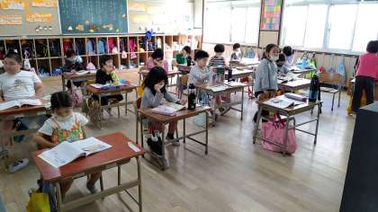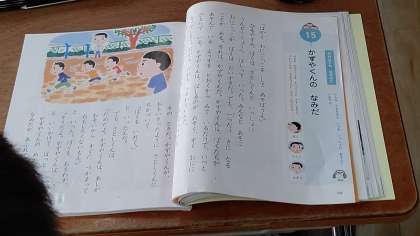 5時間目、1年生が道徳の学習をしています。「かずやくんのなみだ」を読んで、「だれとでもなかよくする」ことについて考えています。