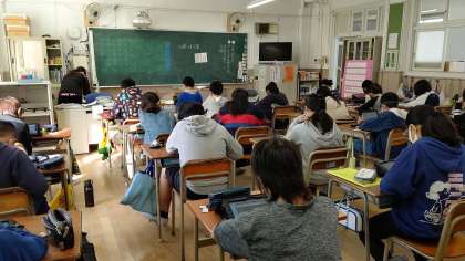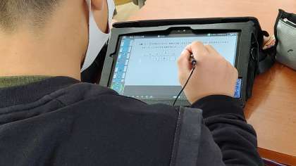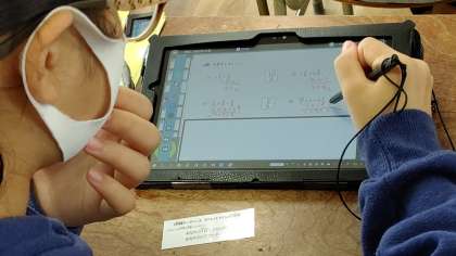 タブレットを使って、算数の「わり算」問題にチャレンジしています。