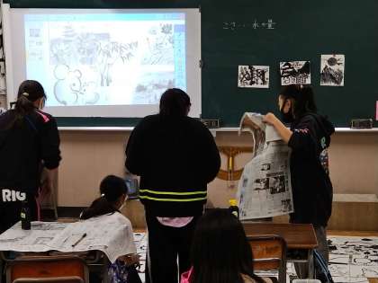 社会科で学習した雪舟の水墨画に挑戦しました。実際にかいてみて雪舟のすごさがあらためてわかったようでした。