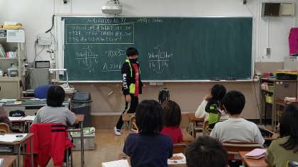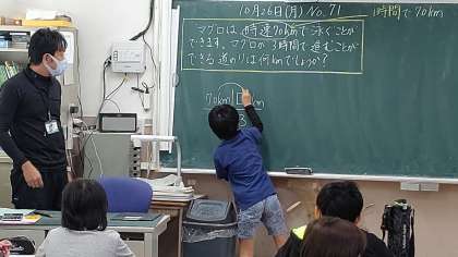 3時間目、5年生が算数の学習をしています。「速度と道のり」について学習しています。