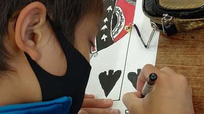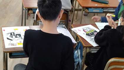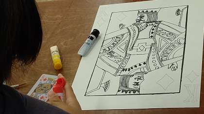 1時間目、5年生が図工の学習をしています。「トランプの絵札の模写」を完成させています。