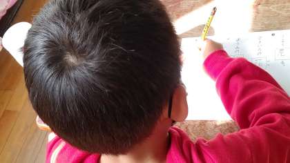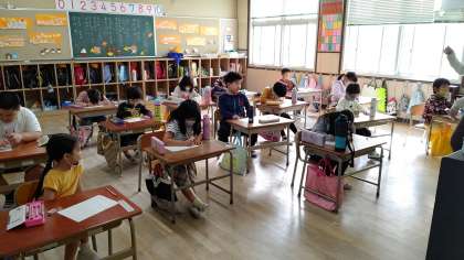 2時間目、1年生が国語の学習をしています。「漢字テスト」をしています。