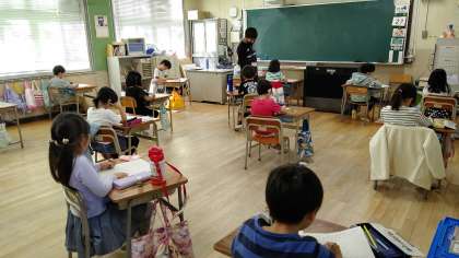 2時間目、2年生が算数の学習をしています。「かけ算のテスト」をしています。
