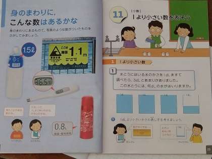 小数「1より小さい数を表そう」の単元です。図を使って視覚的に量感をつかむところから学習を始めています。