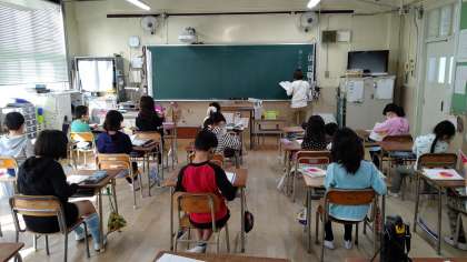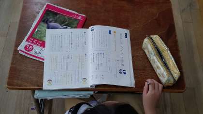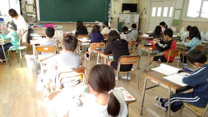1時間目、3年生が国語の学習をしています。「話したいな わたしのすきな時間」の単元で、みんなの前で話したい事を考えています。