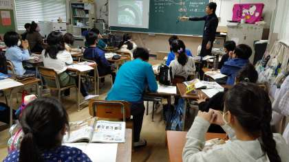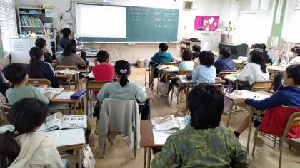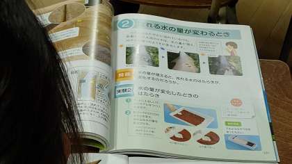 2時間目、5年生が理科の学習をしています。「流れる水のはたらき」を学習しています。