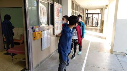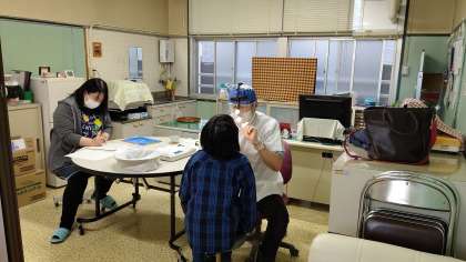 1時間目、5年生が歯科検診を受けています。