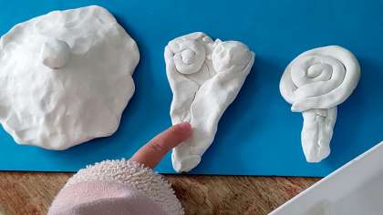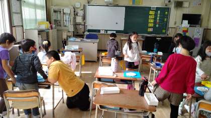 3時間目、1年生が図工の学習をしています。粘土を使って、いろいろな物を作っています。