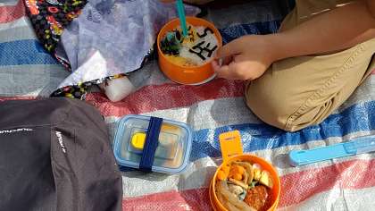 みんなでお弁当を食べています。