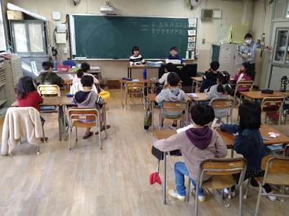 1分間スピーチの様子です。自分の見た夢の話をしていました。