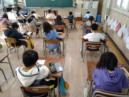 あまりのあるわり算の計算練習をしていました。繰り返し練習することにで定着するように取り組んでいます。