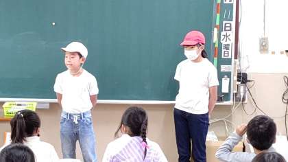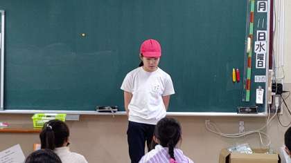 5年生の児童が、出前授業に来ています。「雨ニモ負ケズ」と「千の風になって」の詩の語りを3年生に披露しています。感情がこもった素晴らしい語りでした。
