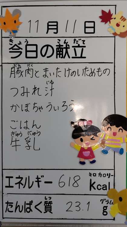 11月11日(水曜)の給食