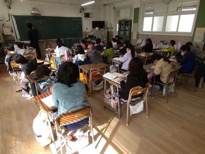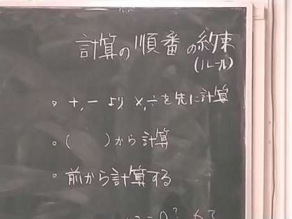 計算順序の決まりについて復習していました。「+−よりも×÷を先にする」「( )の部分を先にする」「前から計算する」という約束事を確認しました。