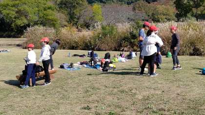 昼食後、芝生広場でみんな遊んでいます。