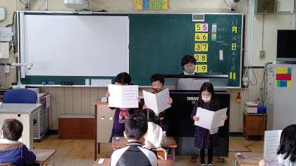1年生が、朝の歌を歌っています。