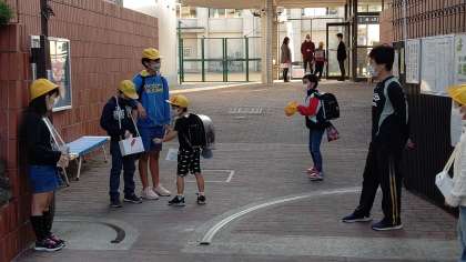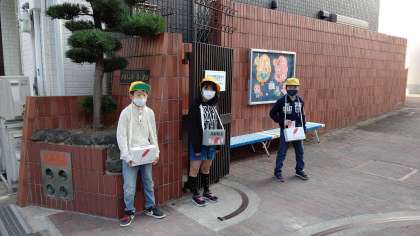 今日から明日まで、「赤い羽根共同募金」代表委員会の児童がしています。