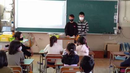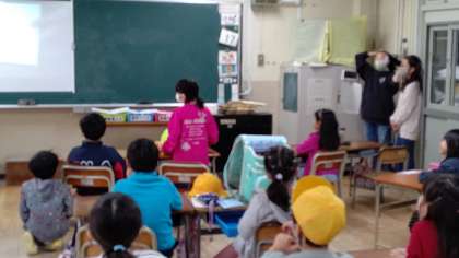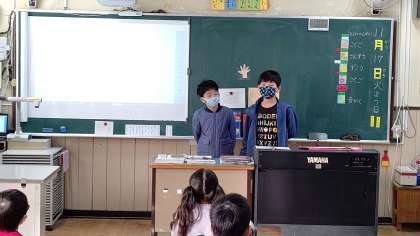 今日の朝の学級活動の時間に、図書委員会の児童が、1年生から4年生までの教室にわかれて、録画していた物語の読み聞かせをしています。