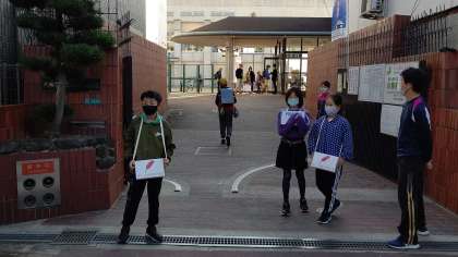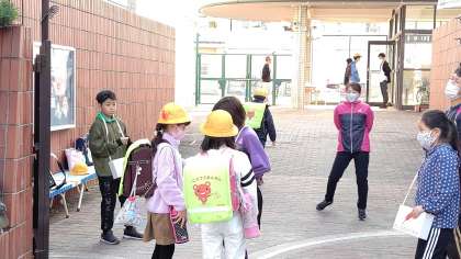 11月18日(水曜) ー 代表委員会の児童が「赤い羽根共同募金」をしています