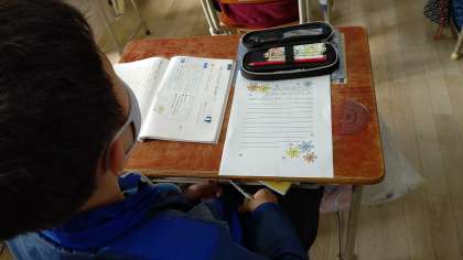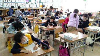 2時間目、4年生が社会見学や出前授業で御世話になった「鶴見焼却場」「柴島浄水場」のみなさまに、お礼状を書いています。