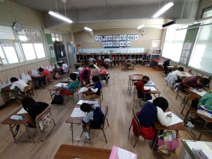 今日は「安全なくらしを守る」という単元のテストでした。みんな集中してテストに取り組んでいました。