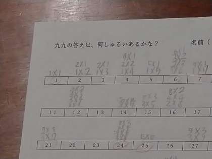 今日の算数の学習は、かけ算の練習プリントを使っておこないました。かけ算の九九は、これからの算数学習でとても重要になります。定着できるように繰り返し学習しています。