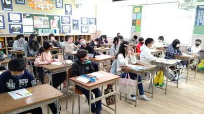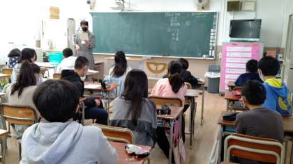 1時間目、6年生が理科の学習をしています。「月の形と太陽」について学習しています。