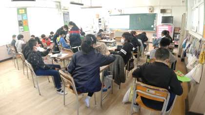 2時間目、6年生が算数の学習をしています。「資料の調べ方」を学習しています。