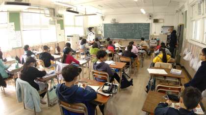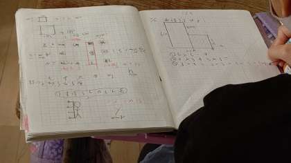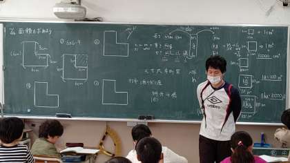 2時間目、4年生が算数の学習をしています。「面積の求め方」を学習しています。