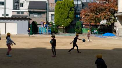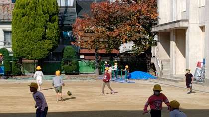 今日は、運動場で1年生から3年生までの児童が遊んでいます。