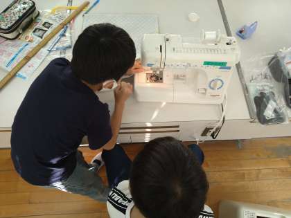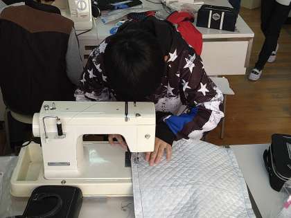 現在、ミシンを使ってナップサックを製作しています。ミシンに悪戦苦闘しながら作業を進めています。